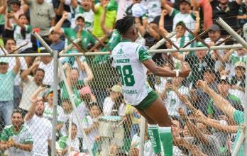 Riascos, autor del gol de Liga de Portoviejo, celebró con la hinchada en el Reales Tamarindos.API